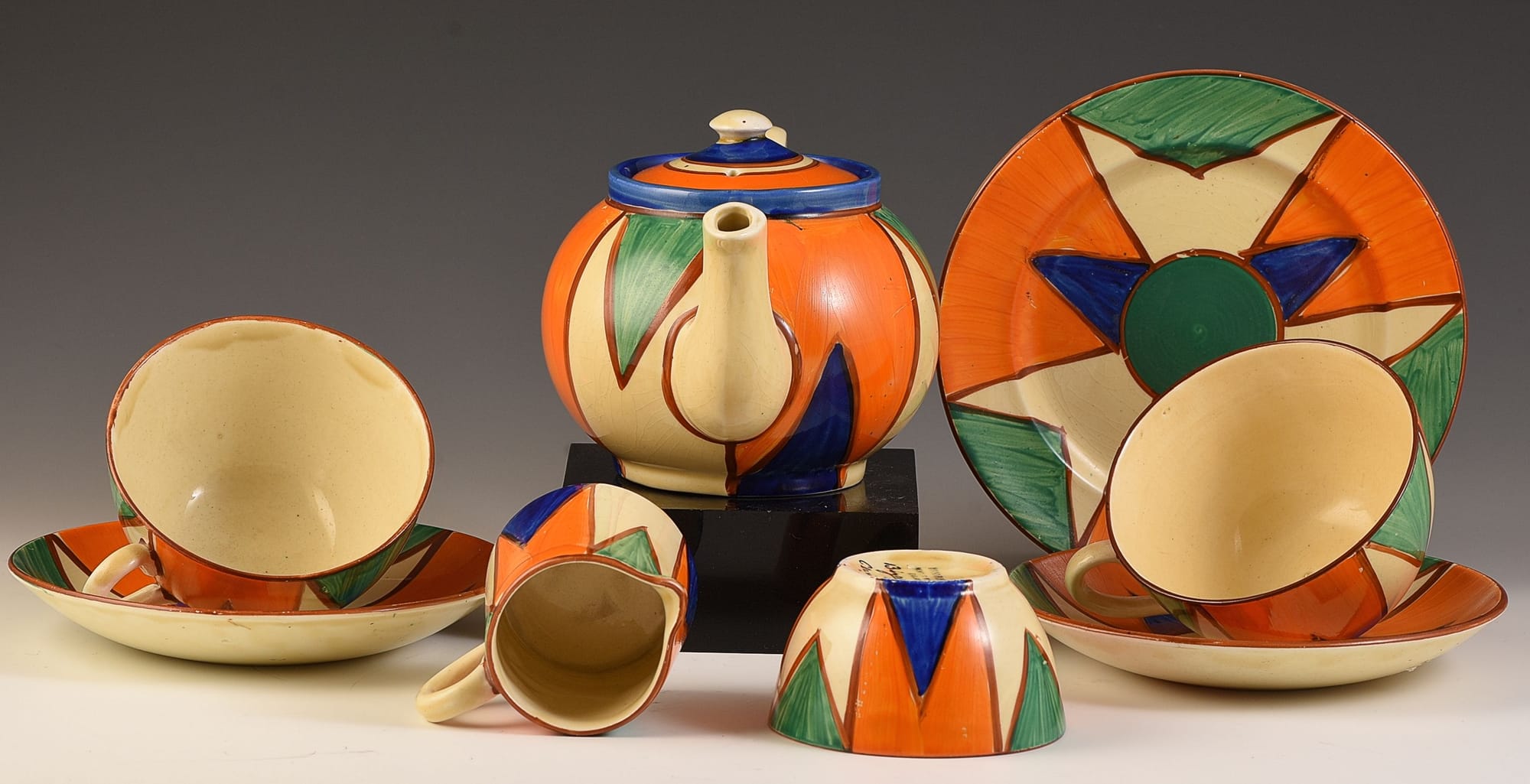 Clarice started her career performing traditional tasks such as gilding—applying fine gold paint to ceramics—and basic painting. However, her innate creativity and desire for more expressive forms of art led her to explore and eventually pioneer revolutionary design techniques. She began experimenting with bold, vibrant colours and unconventional patterns, significantly diverging from the muted tones and floral patterns that were prevalent at the time. Her willingness to push boundaries and challenge the status quo of ceramic design marked the onset of what would be a transformative era not only for her career but for the entire industry. This shift toward innovative designs set the stage for her later work, which would be characterized by dynamic shapes and a modernist aesthetic that came to be synonymous with the Art Deco movement.