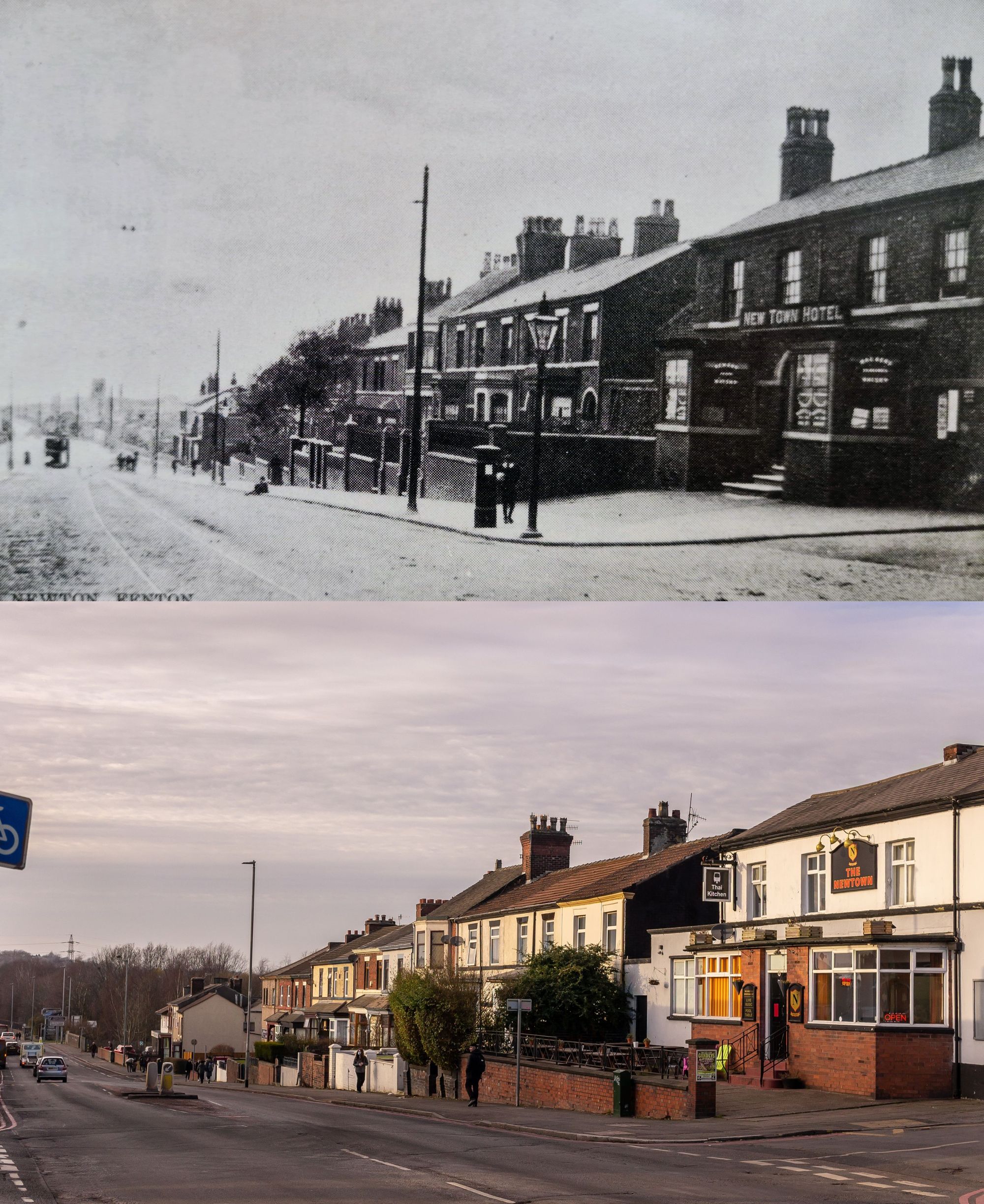 This area is best known to everyone as City Road, but it was previously called Newton. The pub on the right, The Newtown, is now a Thai restaurant. I can't find any record of when it was built, but it does show on a 1922 map of the area. The area actually hasn't changed that much in this photo.