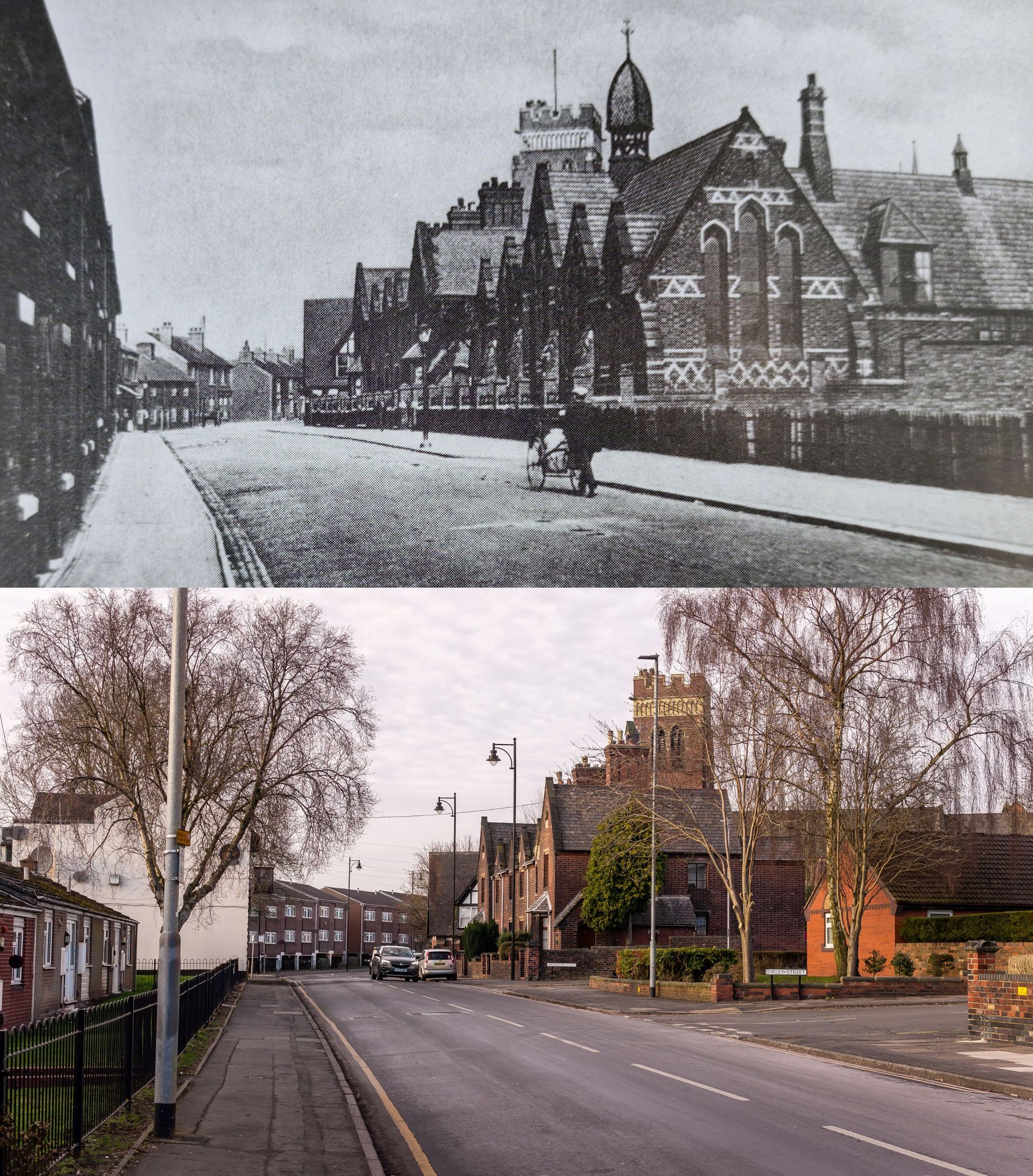 Now known as City Road, this photo looks up what was known as the High Street. The view on the left seems to have not changed very much. The right-hand side however is very different.