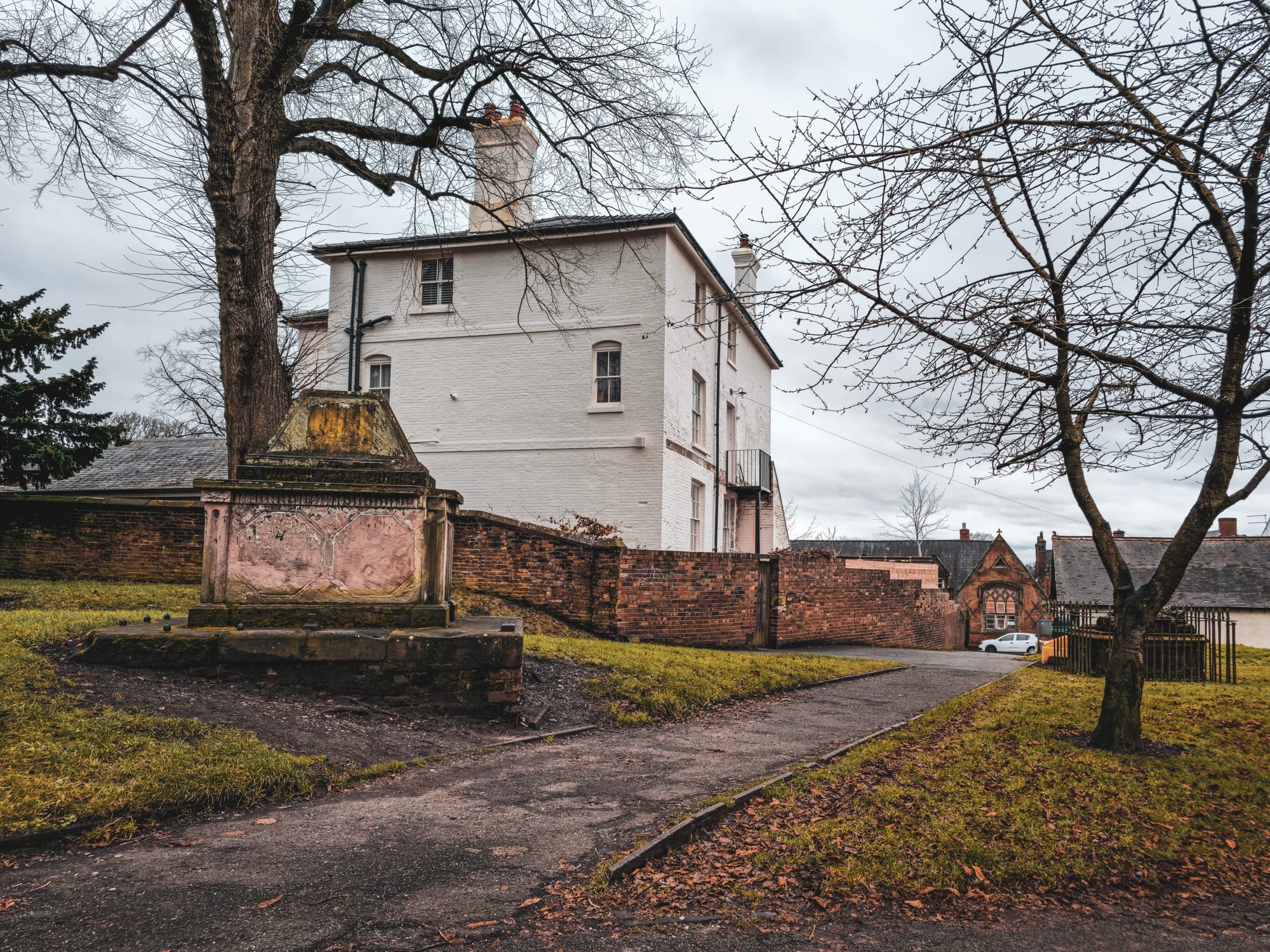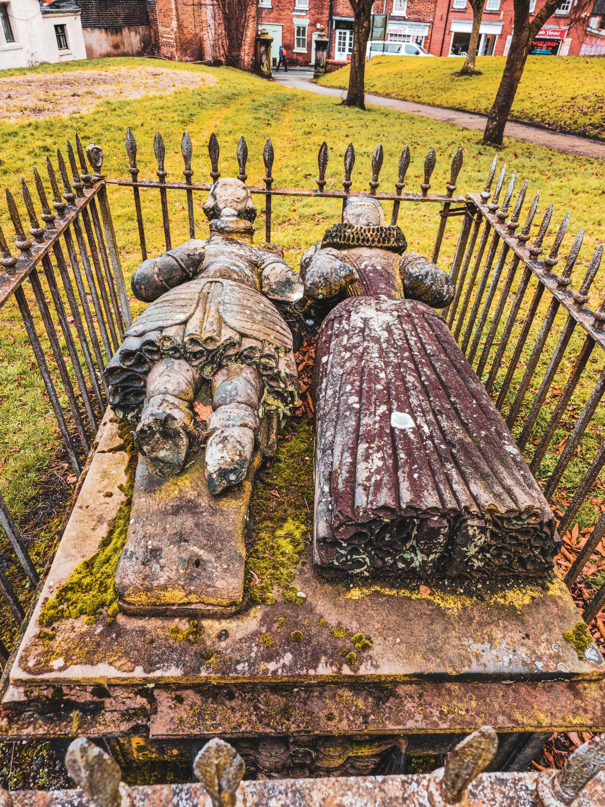However, the dissolution of the monasteries under King Henry VIII between 1536 and 1541 brought profound changes to the Priory. Post-dissolution, it was acquired by William I Crompton, a merchant from Stafford who had made his fortune in London. In 1597, his son, William Crompton II. served as the Sheriff of the County and later as Justice of the Peace until 1603. He was married to Jane, daughter of Sir Walter Aston of Tixall, and together they had 14 children. Their tomb suffered damage due to the collapse of the old church's south aisle. The effigies of William Crompton II and Jane Aston are still visible in the churchyard of St Michael and St Wulfad. The rebuilding of the church at a different location led to their grave, originally inside the medieval church's chancel, being exposed outdoors.