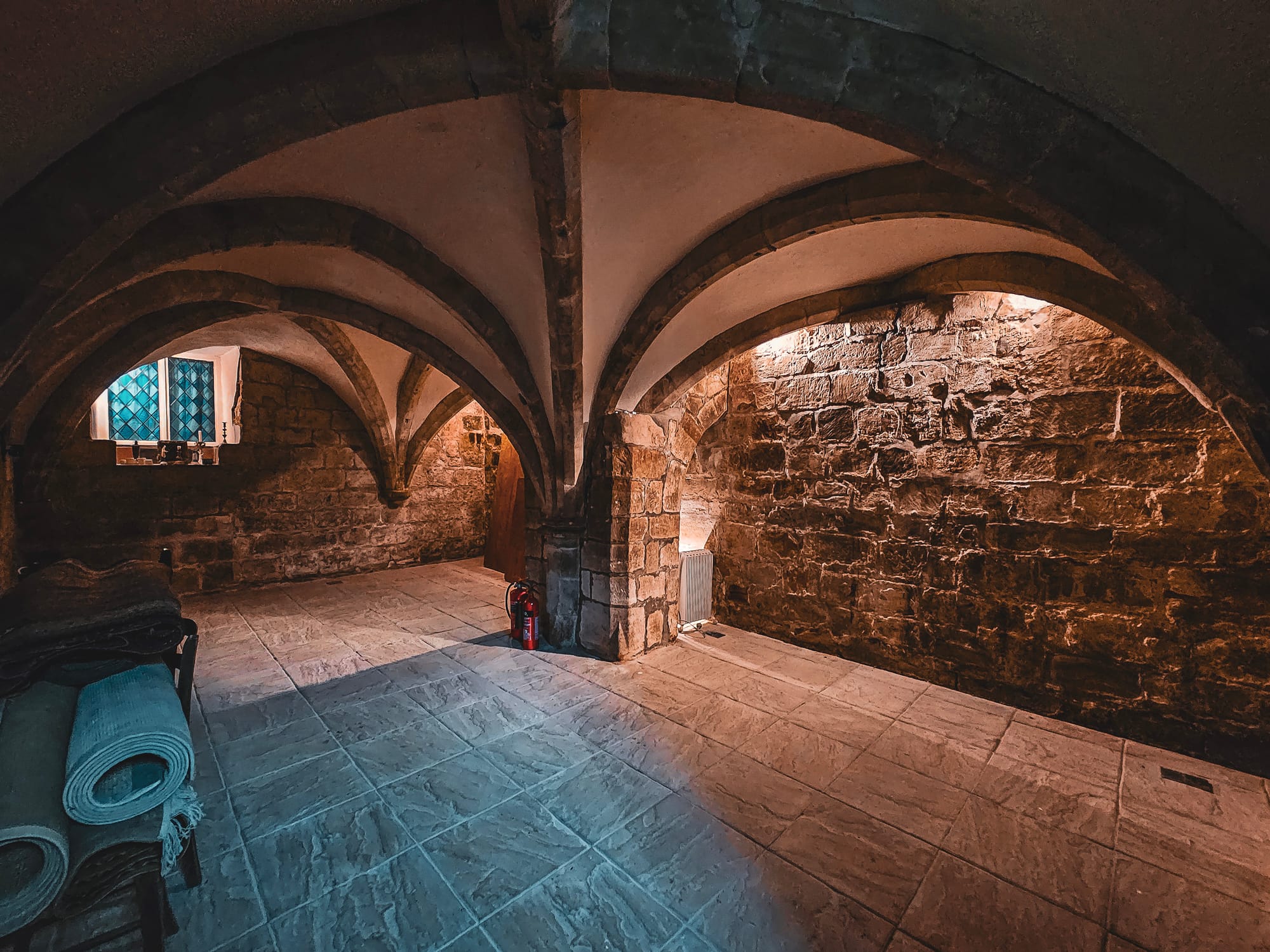 Notably, the cellar houses two bays and two half-bays of the medieval rib vaulted undercroft, a fascinating remnant of the ancient monastery. The vaults are a remnant of the medieval priory, which underwent various phases of construction and expansion over the centuries. The 13th century was a period of significant architectural development in England, characterized by the Gothic style, which often included features such as pointed arches, ribbed vaults, and flying buttresses. These architectural elements were not just aesthetically pleasing but also allowed for larger windows and higher ceilings, creating more light-filled and expansive interior spaces. There is a wall that is a later addition and possibly would have led into a further extension which would have been a crypt. They might have served various purposes, such as storage spaces or as part of the monastic infrastructure.