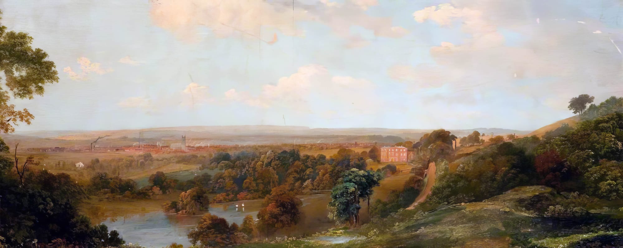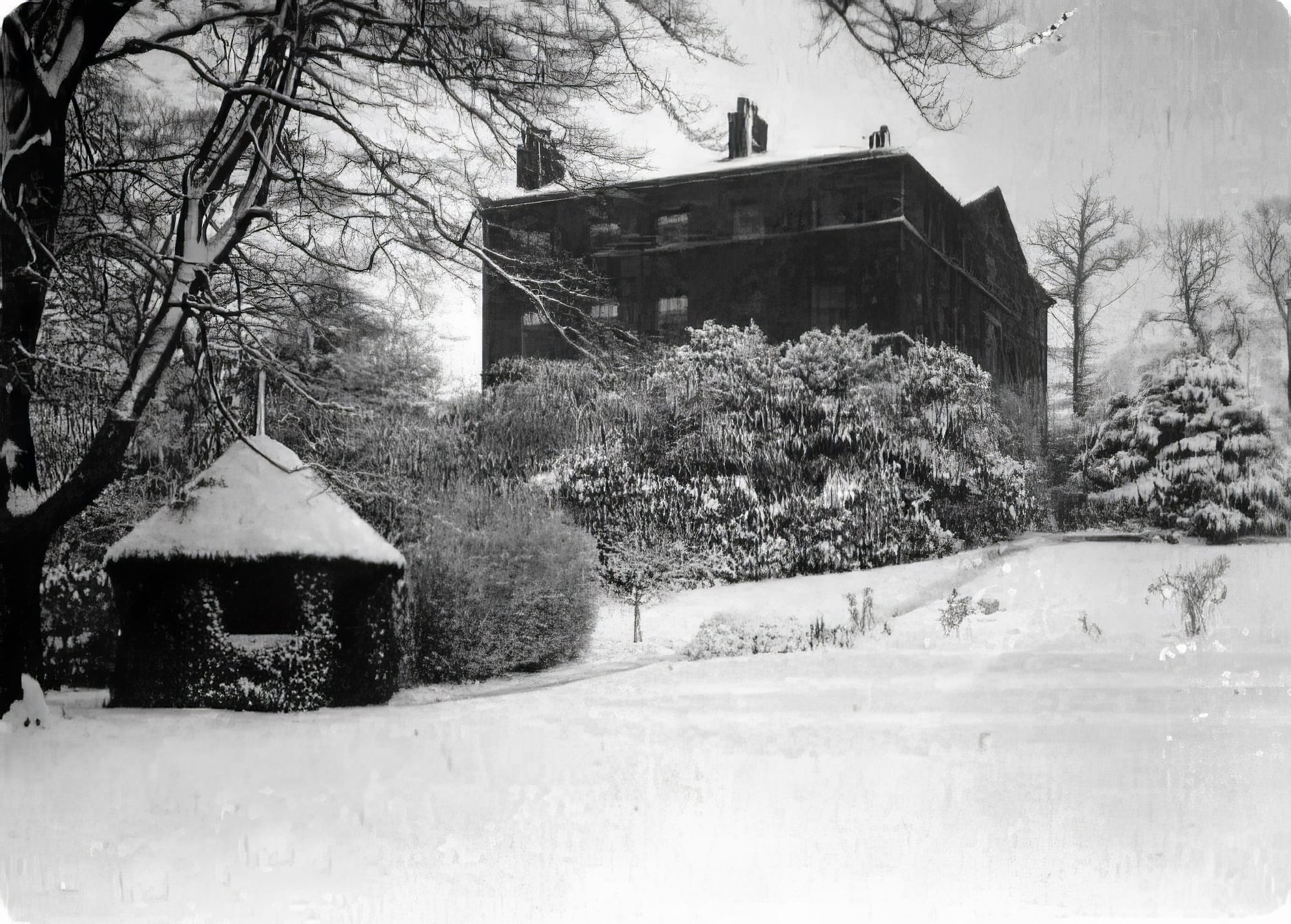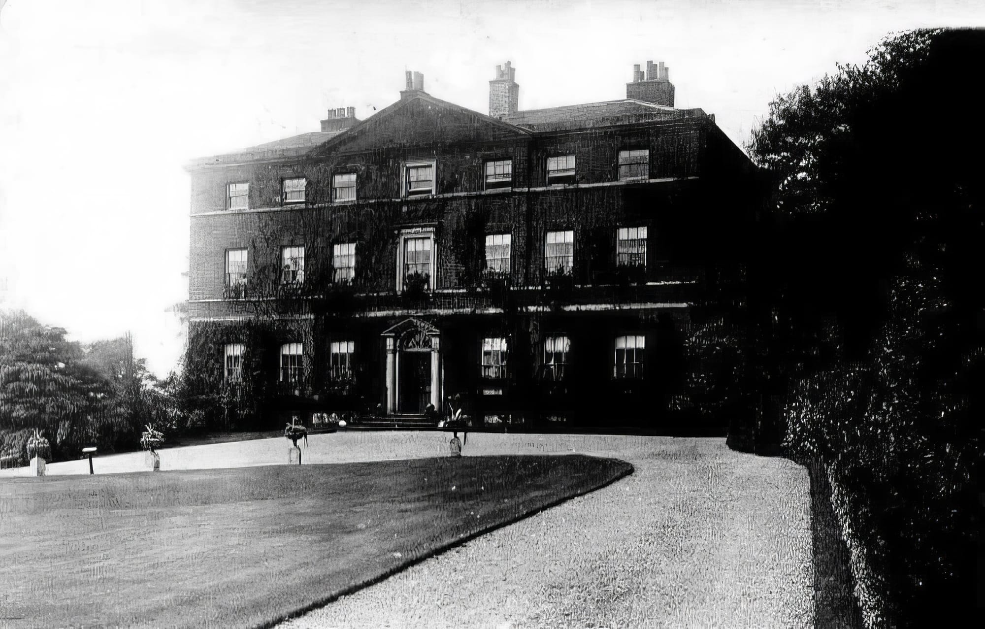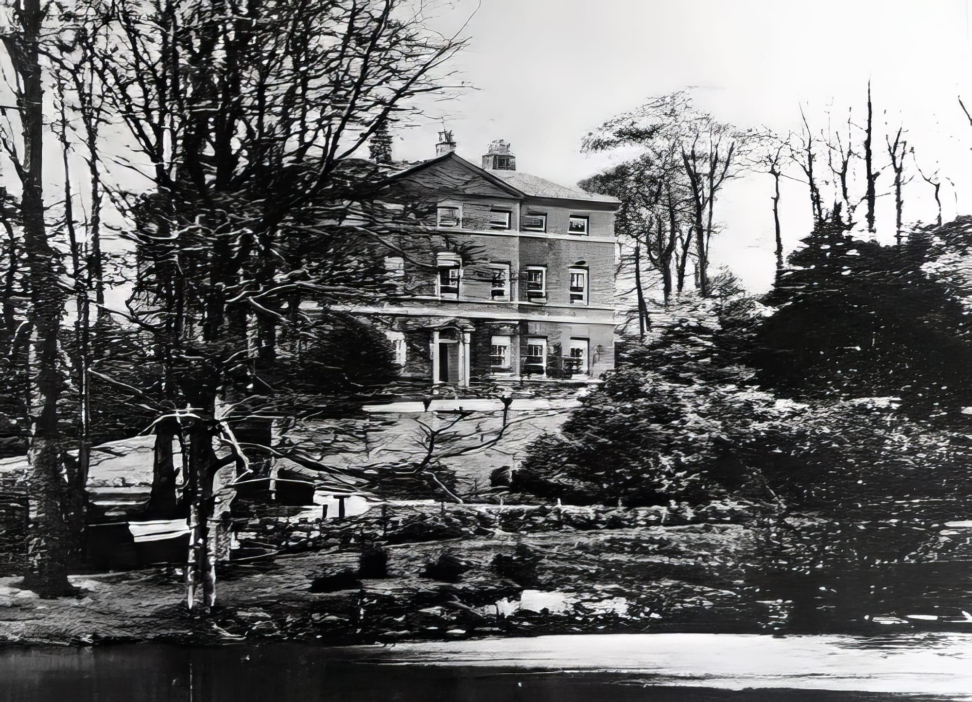 The front terrace showcased a collection of small cannons, and the estate was enriched with forest trees, a summer house, and an ornamental lake complete with a boathouse, the lake being spring-fed.