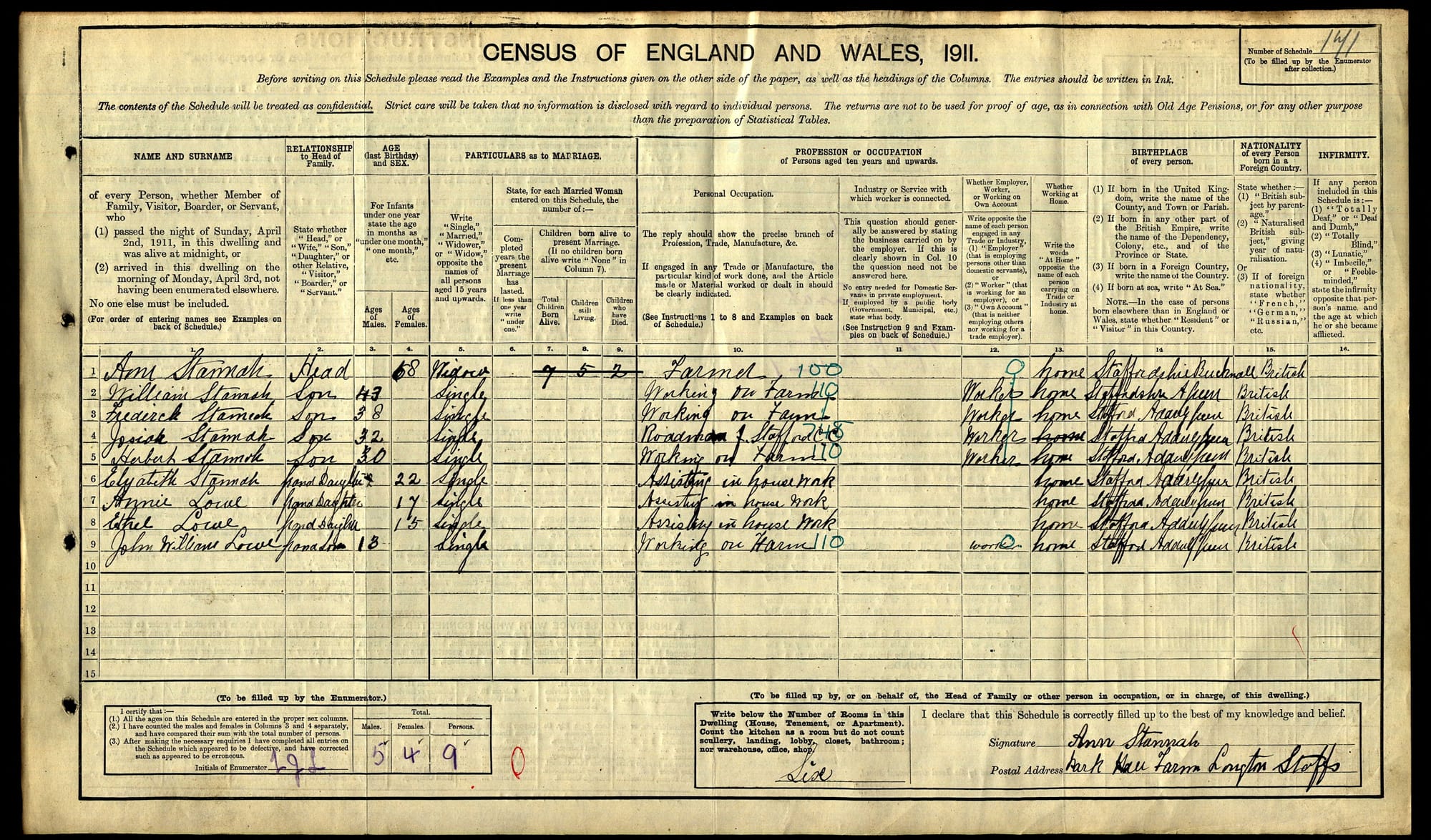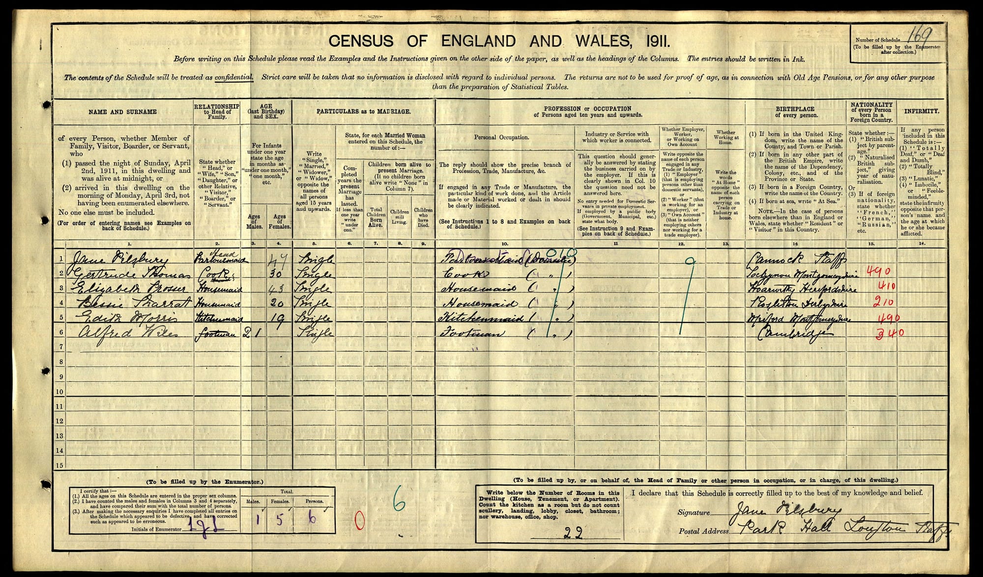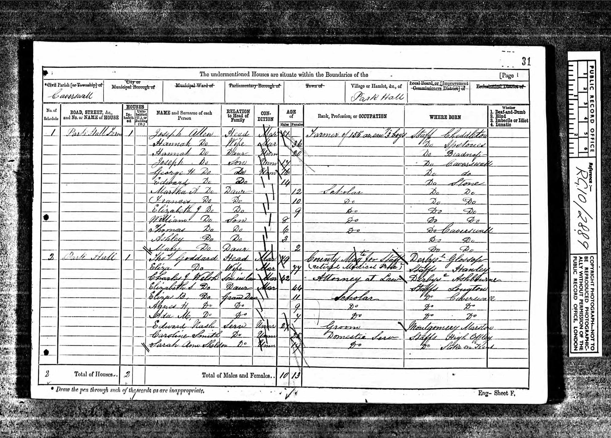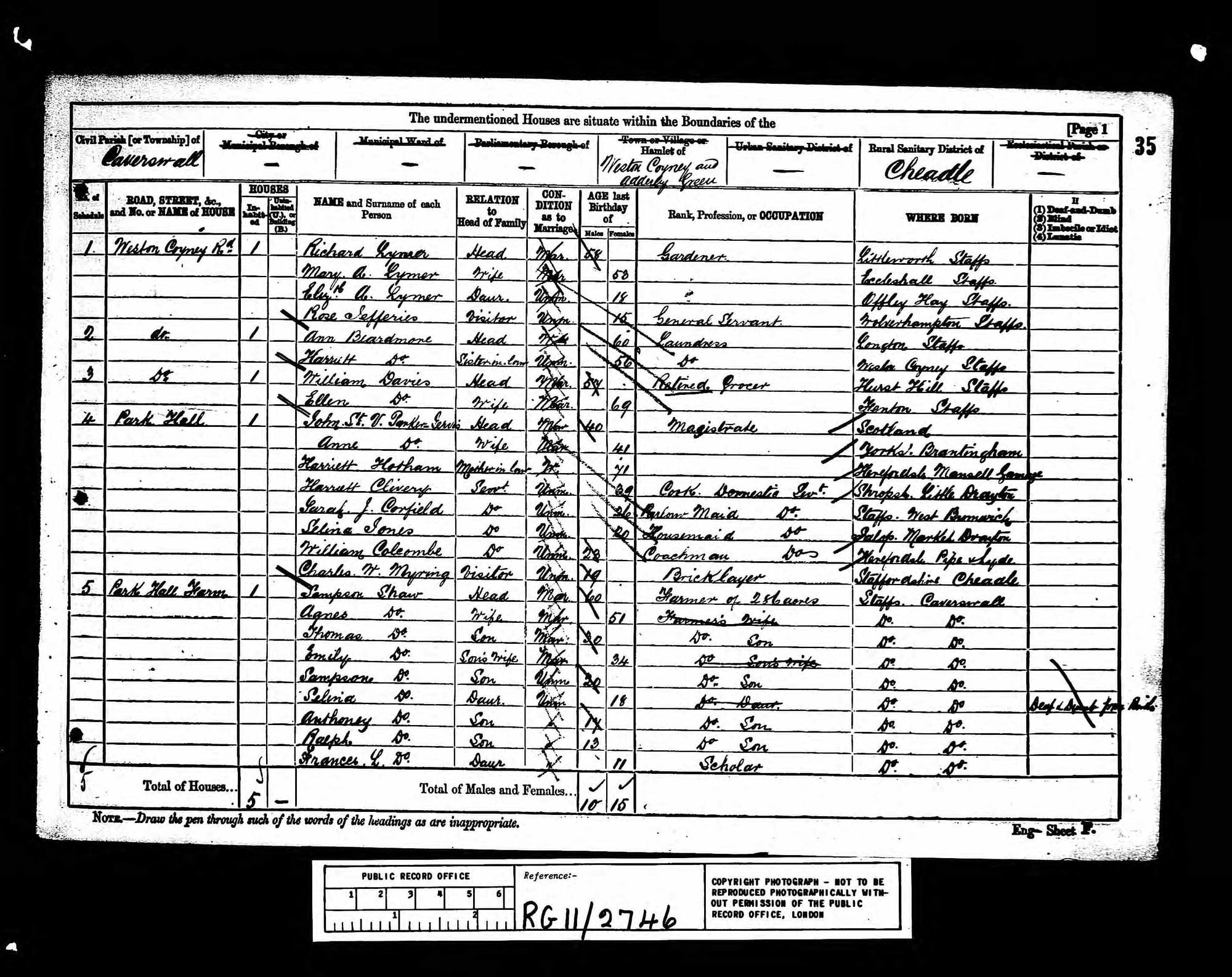 Some of the census for the Park Hall and Park Hall Farm