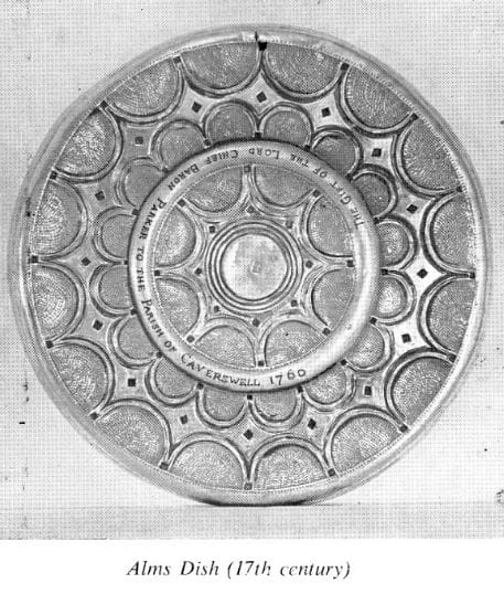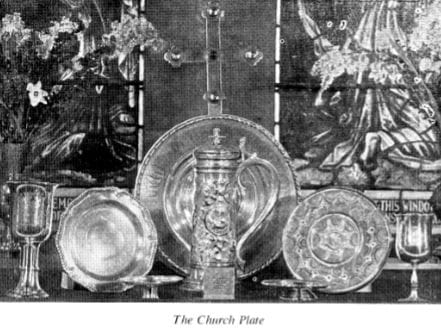 St. Peter's Church received a valuable silver plate set from Lord Chief Baron Thomas Parker in 1760. This set, made of silver gilt, includes a flagon, paten, and almsdish, each engraved with the Parker family crest. Notably, the flagon and alms dish display high-quality hammered work, and the alms dish is dated 1628 with the initials T.T.