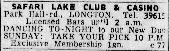 In the 1960s, Park Hall experienced a significant transformation when it was turned into the Safari Lake Club and Casino by Joseph Jackson, who purchased the estate. Officially opening on December 12, 1961, this new venture marked a dramatic shift from the estate's historical roles, aligning it with the leisure and entertainment trends of the era.